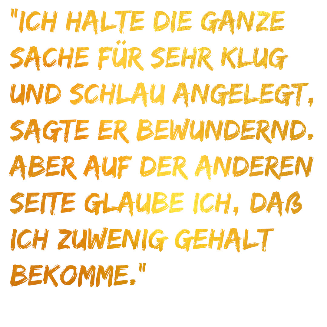 Die Kunst und das liebe Geld. Die romantische Vorstellung von den armen Kunstschaffenden, die der Kunst alles opfern und dadurch zu ihrer Freiheit gelangen, und die Lebensrealität vieler Kunstschaffender kollidieren brutal miteinander. Welche Wirkung haben Förderungen, damit verbundene Kriterien und sich anschließende Honorare auf die Quantität und Qualität von Kunst? Welchen Einflüssen und Faktoren unterliegt die Produktion von künstlerischen Arbeiten? Und welche Rolle spielt dabei das Wagnis 'Leben von der Kunst'? Die Fragen begleiten viele Künstler*innen und Kollektive in den freien Künsten – so auch die Progranauten. Das Thema wird aktuell in vielen Verbünden und Initiativen thematisiert, jedoch vermissten die Progranauten den künstlerischen Umgang damit.